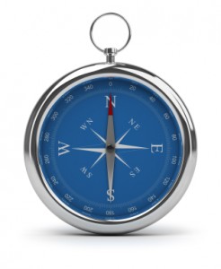 Compass pointing to North. 3d image. Isolated white background.